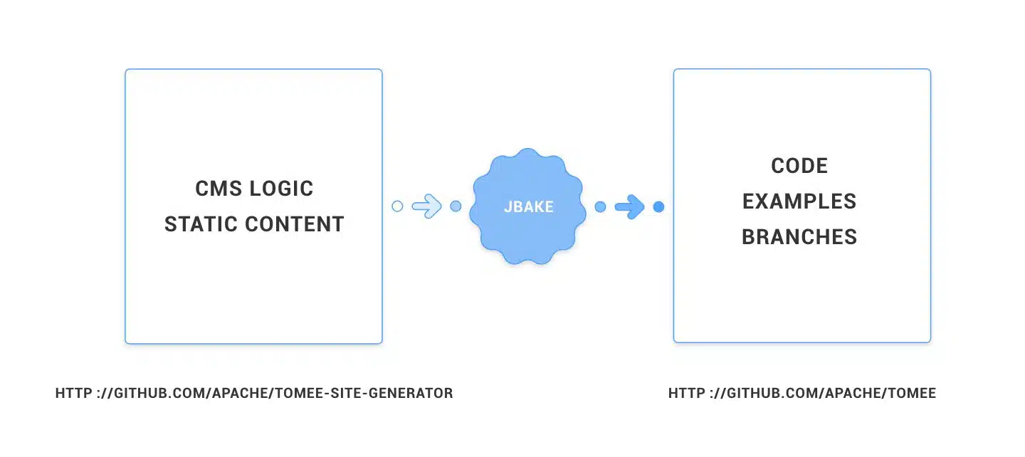 The TomEE site generator has a dependency on the TomEE project because the TomEE documentation and examples live next to the code in the same TomEE repository. The complexity increases because TomEE repository also provides different branches that correspond to each release including examples and documentation for tomee-8.0 , tomee-7.1, and documentation (Javadoc) related to microprofile-2.0 and jakartaee-8.0.